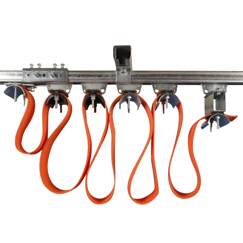 该产品的工作原理见工程应用图示(1)扁平电缆的始端(接现场接线盒)固定于导轧的始端固定器上,再根据现场允许运行的空间,间隔适当的长度(1-2.5mm)依次固定在携带电缆的四轮台车上,电缆未端(接用电源)因定在*后一个小车(牵引车)上。通过拔车上的弹簧拔小车往复移动,通过电缆的拖拽(长度如超过20m应考虑原用牵引绳,使电缆免受拉力)作用,带动所有的小车在轧道中任意速度自由滑动,导轨安装简便,无需调试,且无触点接触供电等优点,**可靠。